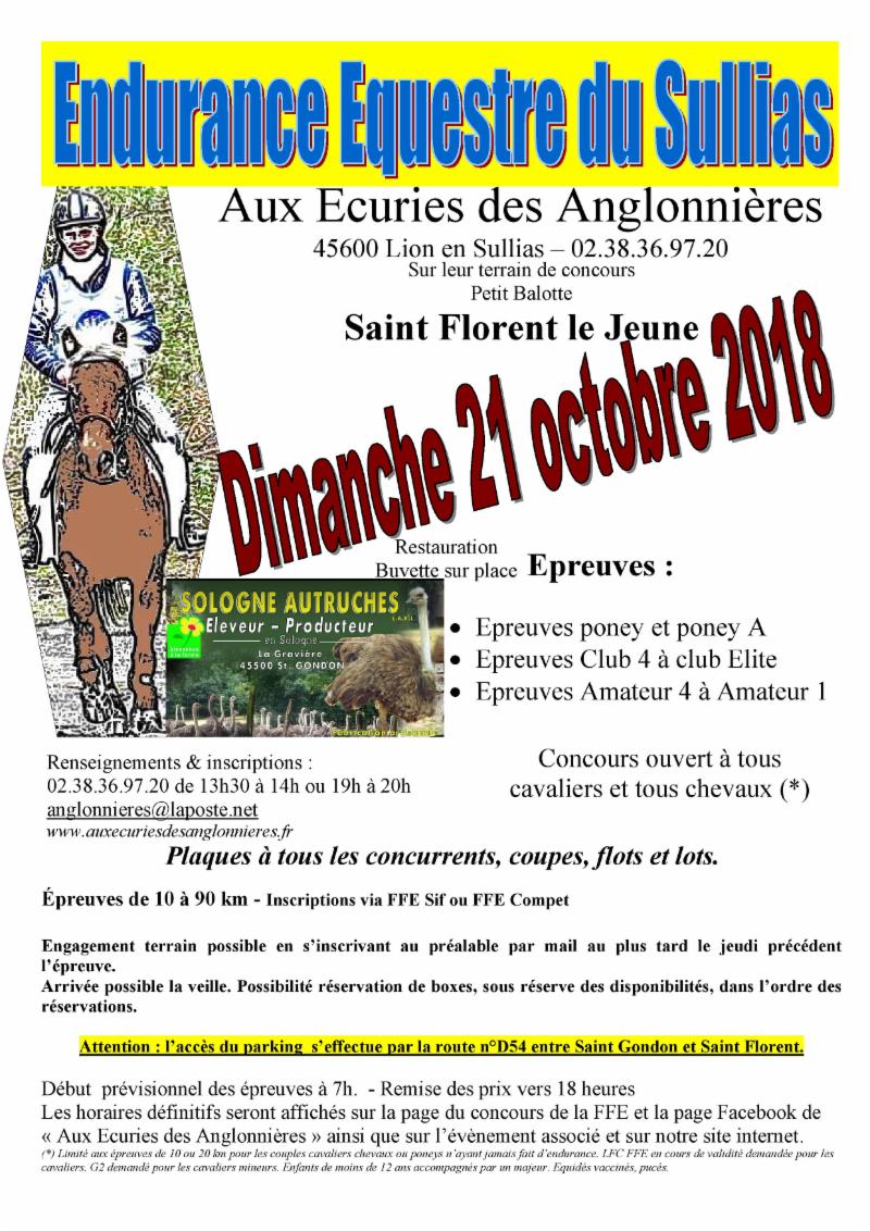 18 mars 25 mars 1er avril 8 avril 22 avril 27 avril 29 avril 6 mai 12 et 13 mai 19 mai 27 mai 3 juin 10 juin 24 juin 12 au 15 juillet 28 au 29 juillet 5 août 16 au 19 août 26 août | Endurance à Dixmont (58) Endurance à Lignières (18) CSO à Saran (45) Randonnée de la vallée de la Sange (45) CSO Vienne en val (45) championnat départemental CSO à Lamotte Beuvron (41) TREC à Changy (45) CSO à Brinon (18) Championnat Régionnal CSOà Lamotte Beuvron (41) TREC à Changy(45) Championnat Régionnal Endurance à Amilly (45) Championnat Régionnal CSO à Amilly (45) CSO à Courtemaux (45) CSO à Vienne en val (45) Championnat de France CSO à Lamotte Beuvron (41) Championnat de France Endurance à Lamotte Beuvron (41) Endurance à Michaugues (58) Sologn'Pony à Lamotte Beuvron (41) Endurance à Givardon (18) |