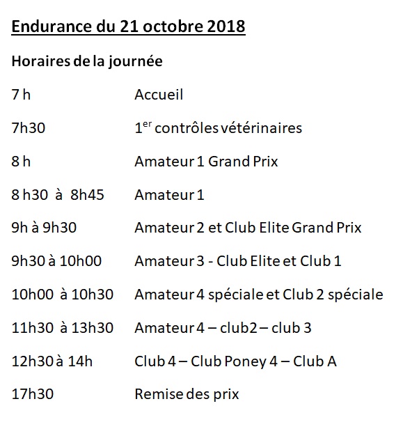 Dimanche 16 avril : TRECDimanche 17 juin : Championnat départemental d'Endurance Club et amateur