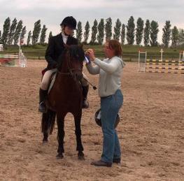 En se formant ensemble, une des jeunes cavalières, Magali, grâce au dévouement de son père, a même été capable de faire la finale des 6 ans à Fontainebleau avec mon étalon Idoole de Chanteau, avec de très beaux parcours en respectant Idoole. | Magali et Idoole de Chanteau |
